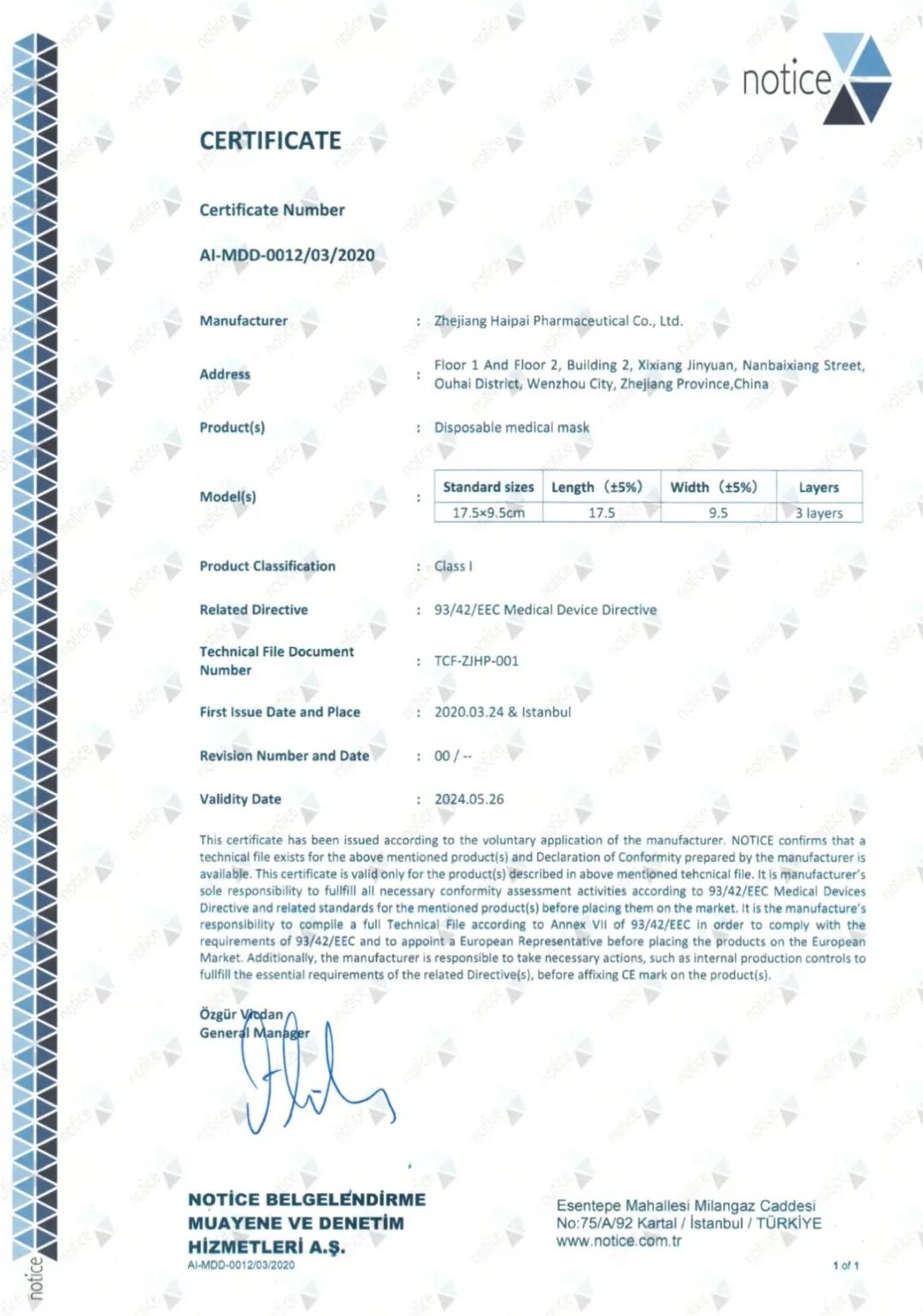 The disposable medical masks of “Haipai Pharmaceutical” are produced strictly according to the national and group standards including GB/T 32610-2016, GB 2626-2006, YY/T 0969-2013 and T/ZFB 0004-2020 as well as EU and EN 14683 test standards. All of the company’s products are qualified according to the detection of testing units with CNAS and CMA authorization and authorized agencies of EU test standards. Meanwhile, we have acquired EU’s CE certification , and entered the “white list” of the Ministry of Commerce.